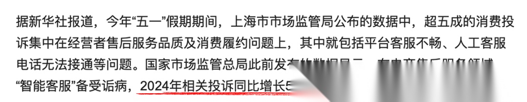 据国家市场监督管理总局发布数据显示,2024年,仅电商售后领域,关于“智能客服”的投诉就同比增长超过50%。