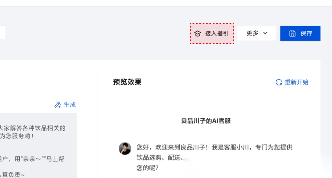 那么搭建好智能体后,就是各大平台的接入了,点击“接入指引”。