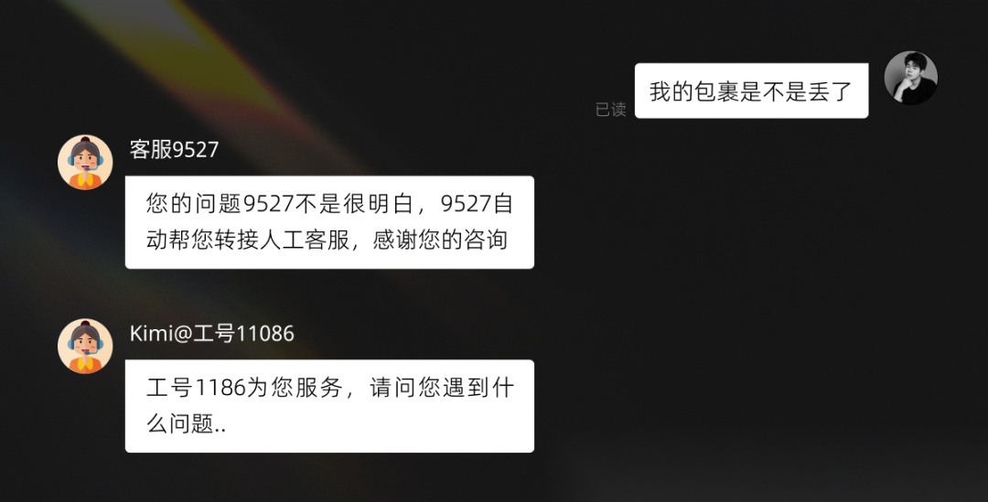 你要是换种说法:“我的包裹是不是丢了”,关键词变了,它就会陷入迷茫,答非所问,甚至让你"重新描述问题"。