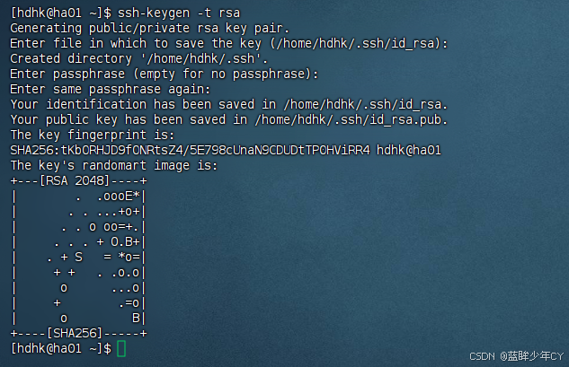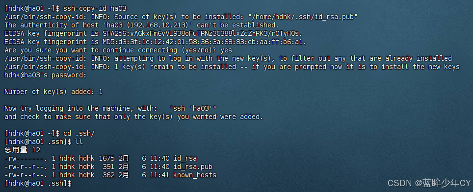 在ha01上执行,之后在ha01上可以免密登录到ha02和ha03上