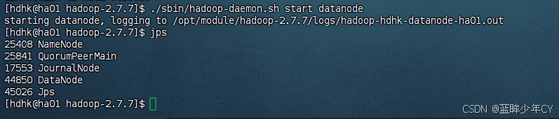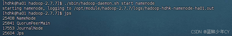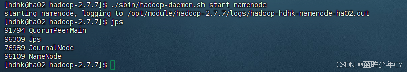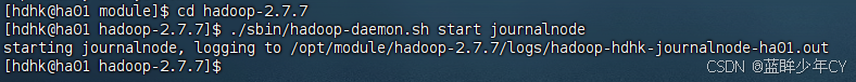 在各个JournalNode节点上,输入以下命令启动journalnode服务