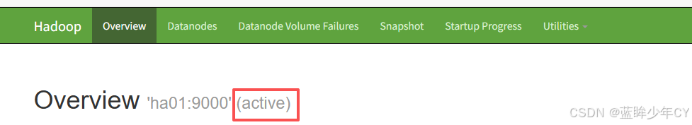所谓HA(high available)就是24小时不中断服务,实现高可用最关键的策略是消除单点故障。HA严格来说应该分成各个组件的HA机制:HDFS的HA和YARN的HA。Hadoop2.0之前,在HDFS集群中NameNode存在单点故障(SPOF)。
