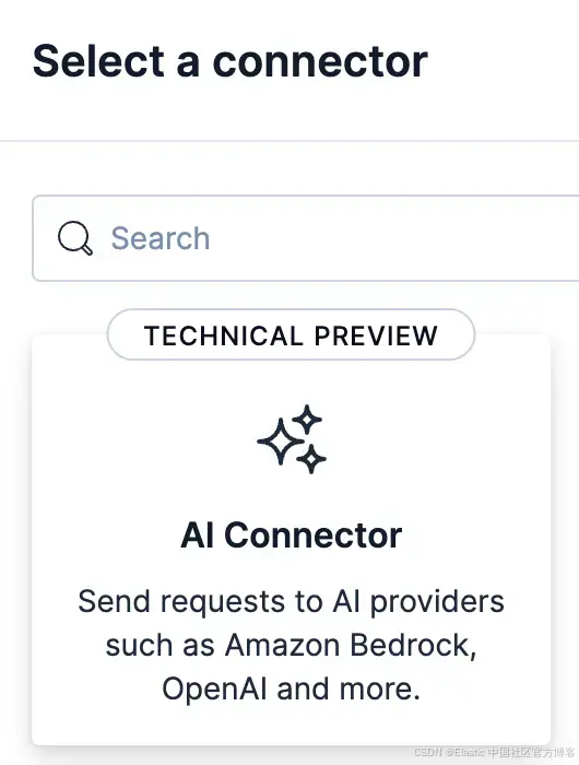 如果你使用 serverless,你需要从 Stack Management Connectors 页面创建一个新的 connector。首先,点击 AI Connector。