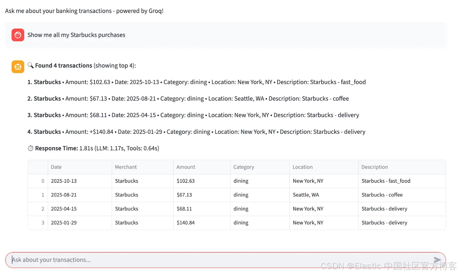 在将大语言模型( LLMs )与 Elastic 结合使用时,其中一个挑战是我们通常需要非常快的结果。Elastic 在提供毫秒级响应时间方面没有问题。然而,当我们引入 LLM 调用时,性能可能会下降到不可接受的水平。这正是使用 Groq 的硬件推理在将 Elastic 与 LLM 结合时可以极大提升结果速度的地方。