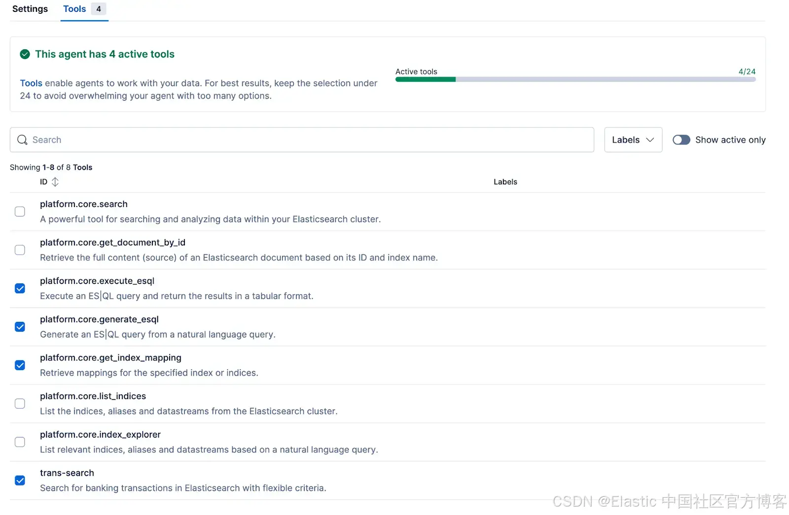 - ES|QL 工具:允许你使用模板化的 ES|QL 定义查询。