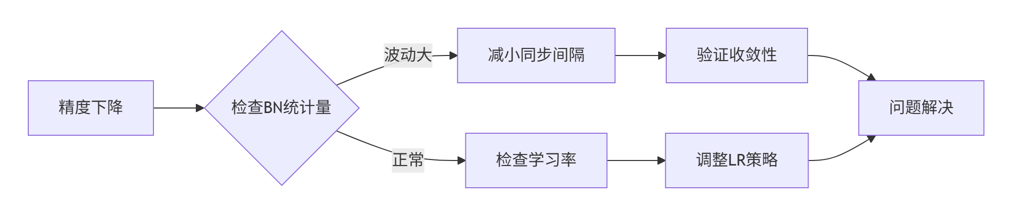 排查路径:BN统计量 → 同步间隔 → 学习率调度