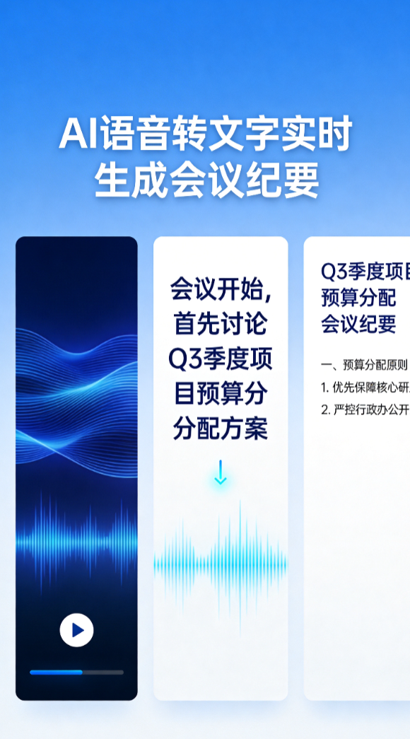 - 处理:语音转文字、重点提取、行动项识别、责任人分配