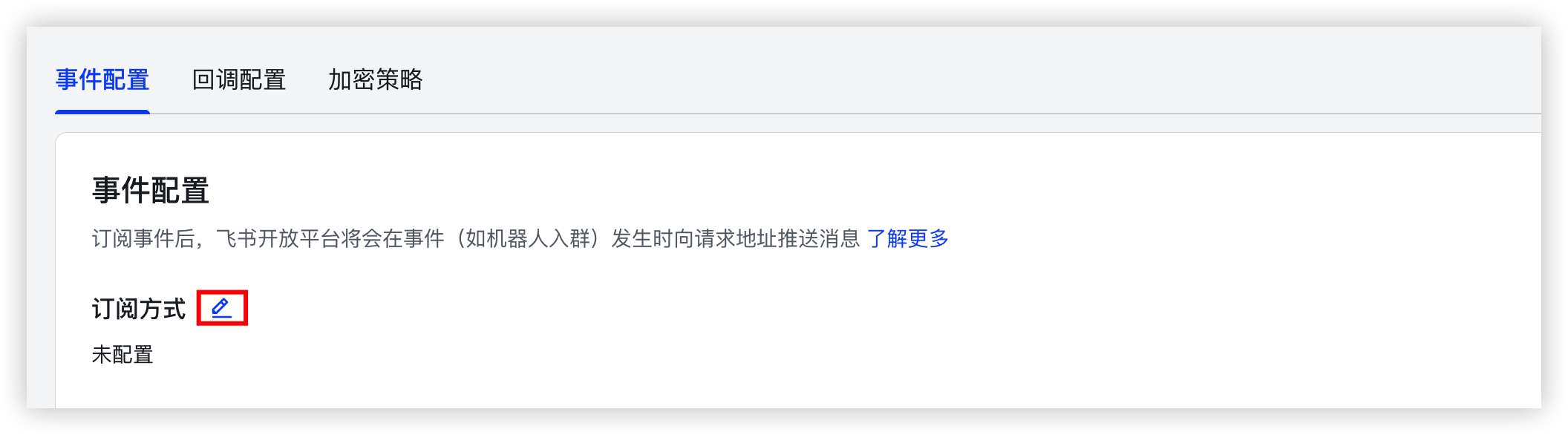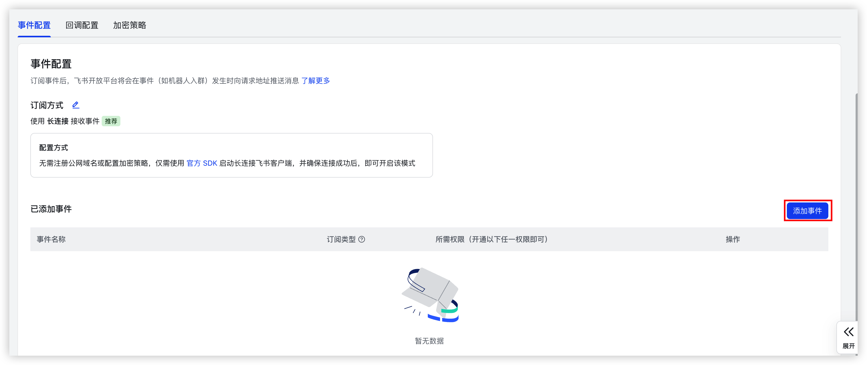 - 在左侧目录树选择“开发配置 > 事件与回调”。