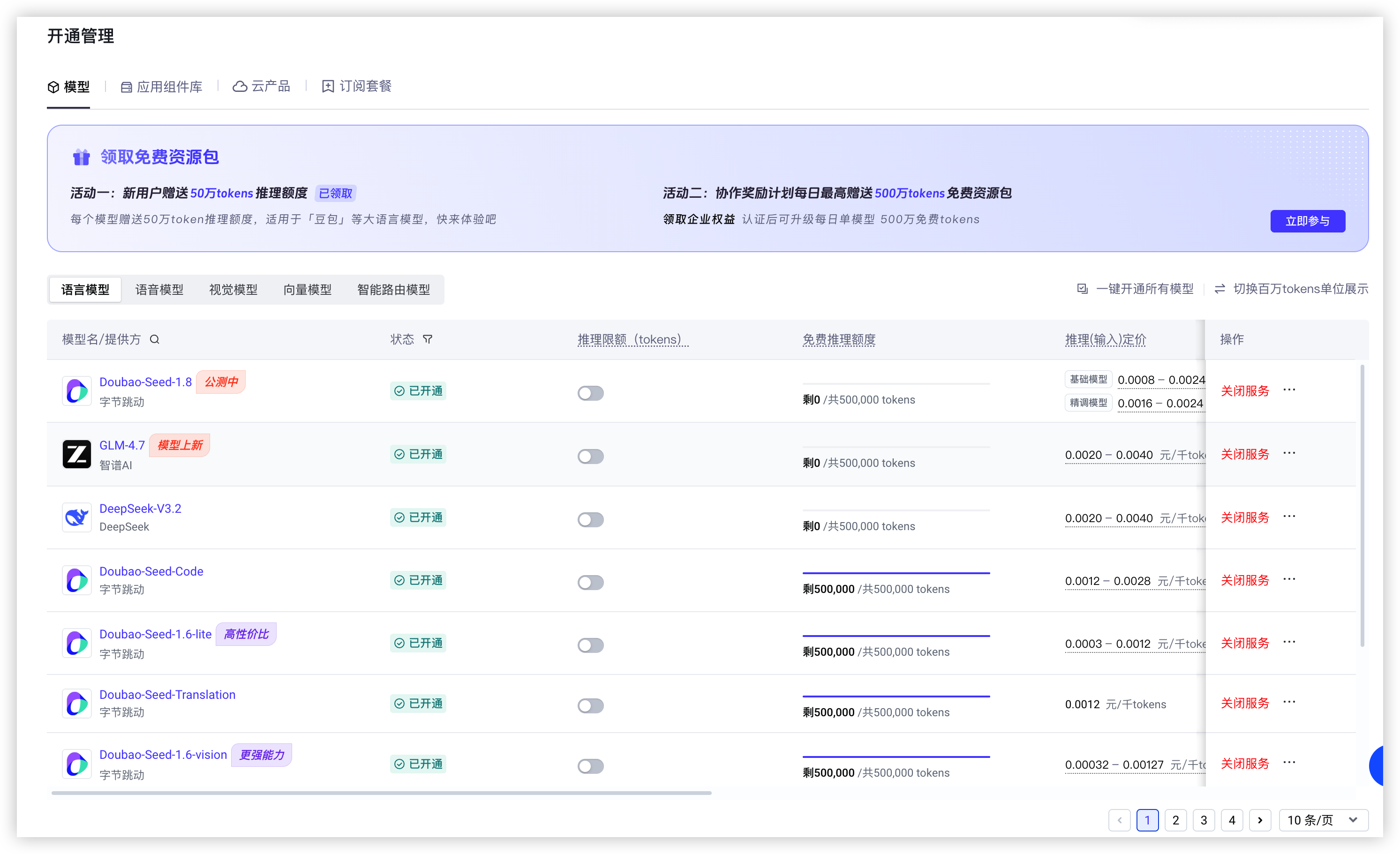 步骤二:开通方舟大模型服务并获取配置