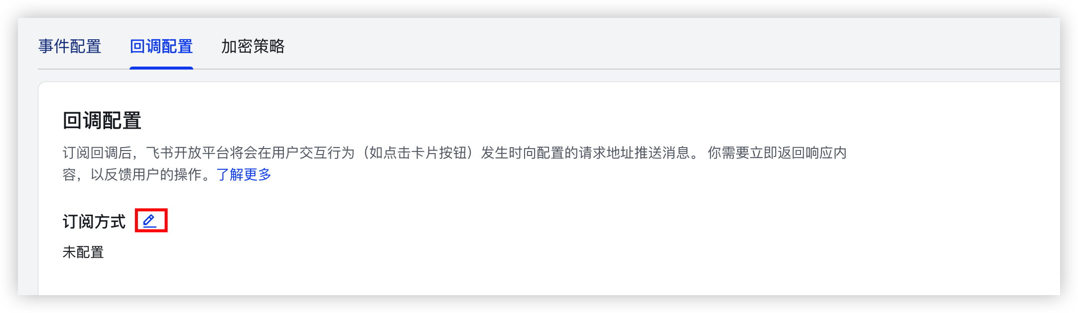 - 选择“回调配置”页签,单击“订阅方式”旁的编辑按钮。