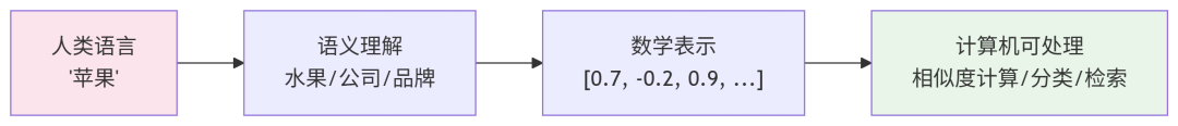 通俗比喻:假设你要教一个外星人理解地球语言,这个外星人不懂中文、英文,却精通数学——你该怎么让它明白“苹果”“电脑”“注解”这些词的含义?