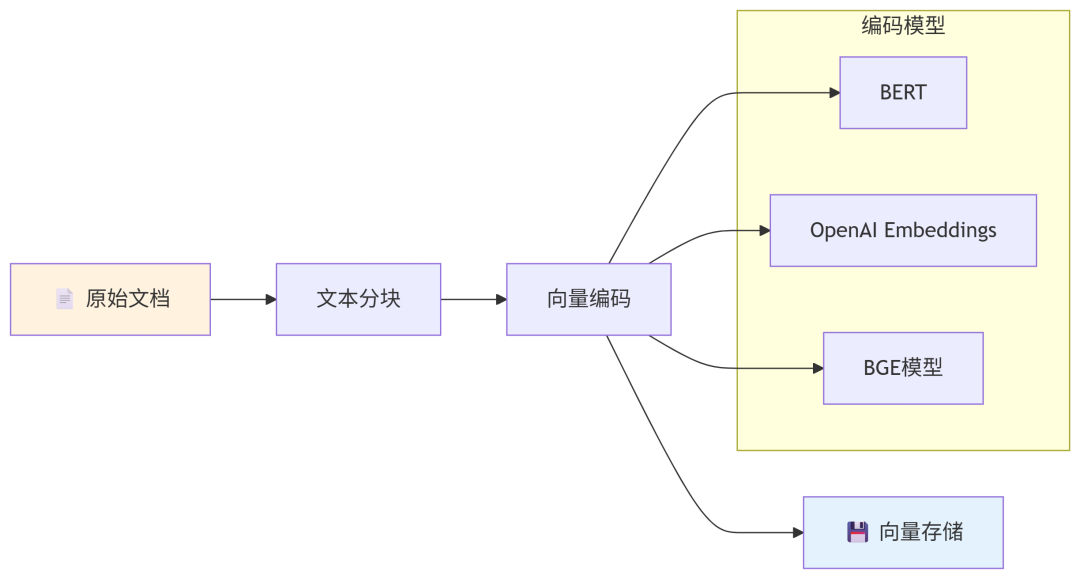 向量化编码,就是用专门的“向量模型”,把分好的文本块转换成向量——小白不用自己搭建模型,直接用各大厂商提供的现成模型即可,节省算力和时间。