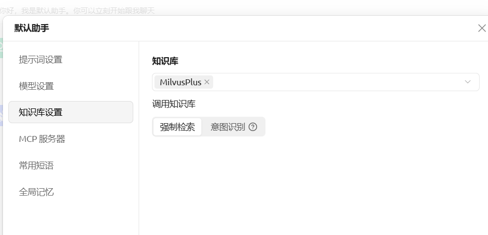 - 编辑刚才创建的“测试助手”,在“关联知识库”中,勾选我们第三步创建的“MilvusPlus源码知识库”,点击“保存”。