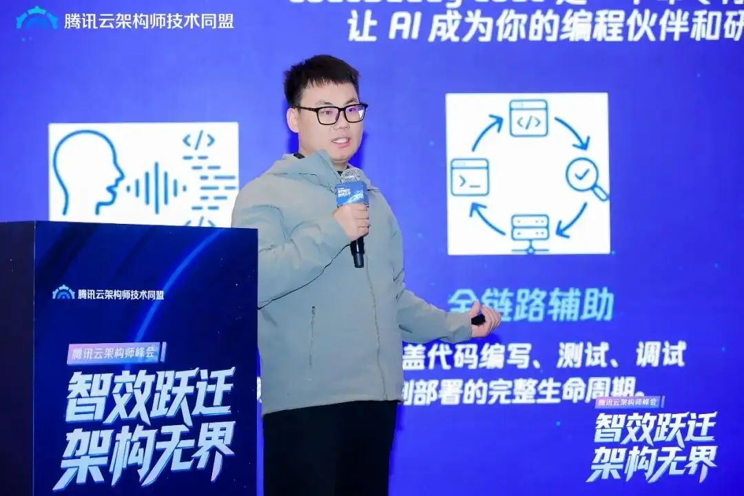 腾讯云副总裁、腾讯云架构师技术同盟品牌发展主席 徐勇州发表致辞。他表示:我们正见证一场贯穿算力、模型到应用范式的全方位技术较量。面对如此深层的范式迁移,架构师群体站在了能力重塑的十字路口。他抛出了三个核心挑战,直指每位技术人的内心: