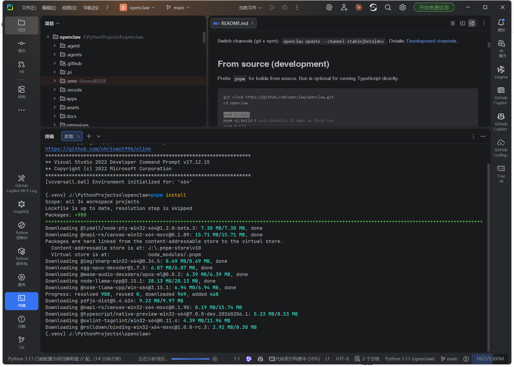 pnpm install时卡住,建议配合国内镜像源:pnpm config set registry https://registry.npmmirror.com