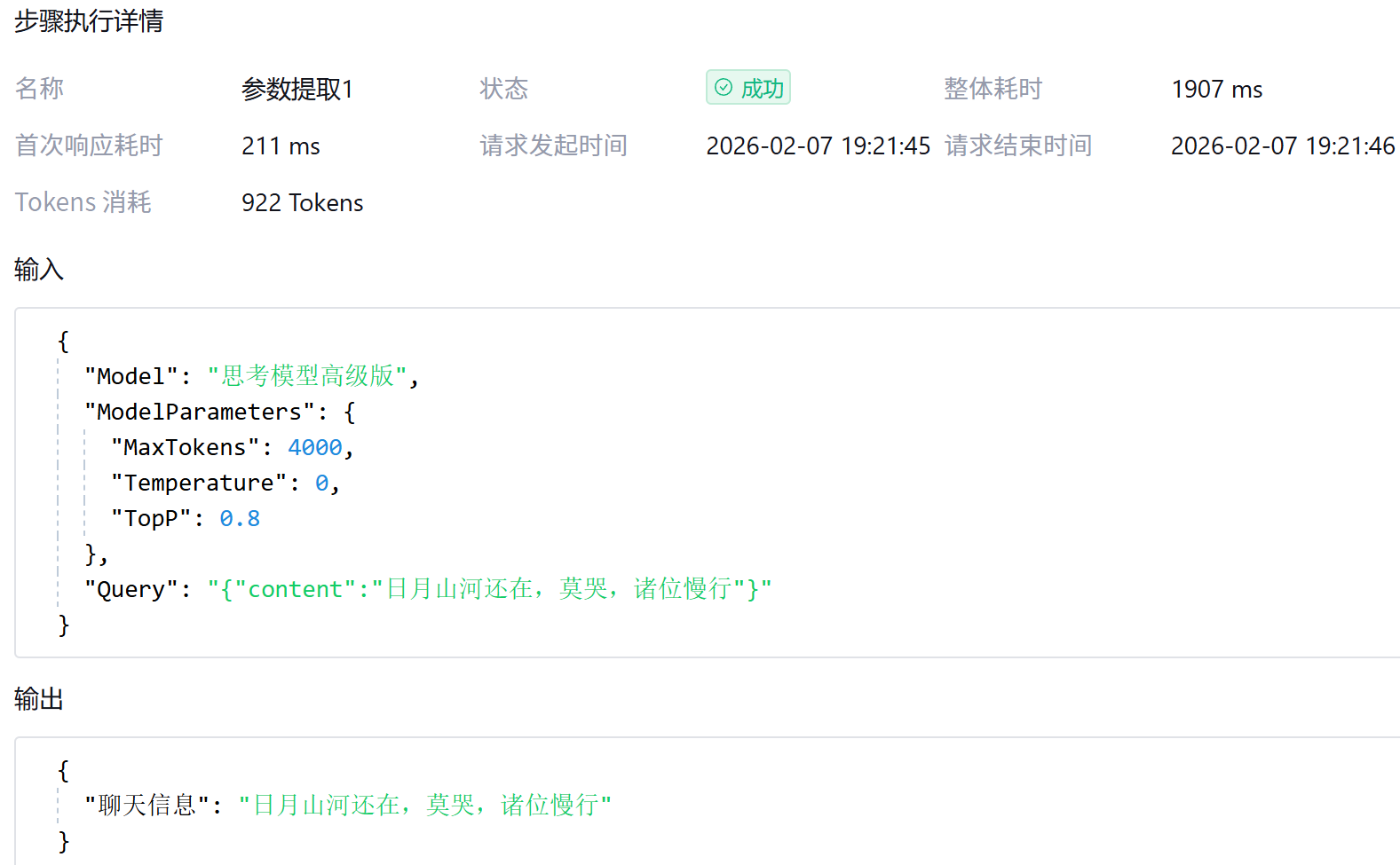 :当用户配置好智能体调用的APIKEY和url后,通过与用户进行“单轮、多轮对话”来收集用户发送的参数,参数缺失、模糊时可以自动反问澄清。
