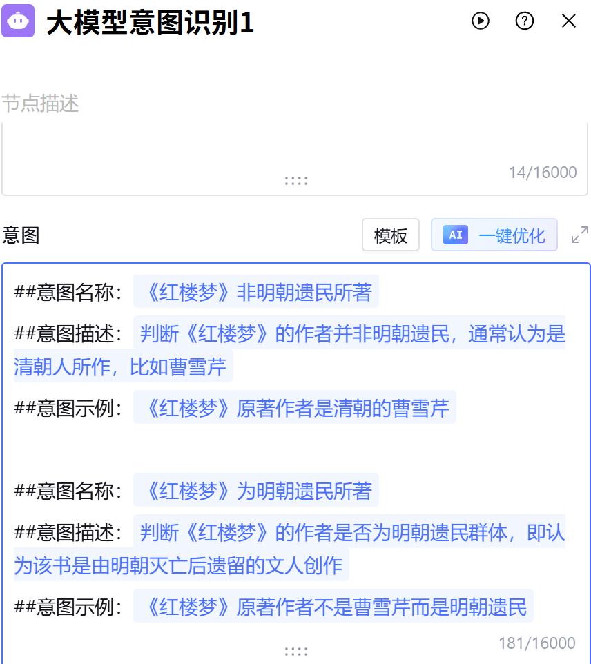 :大模型根据“待识别内容”识别意图,如“是、否”。