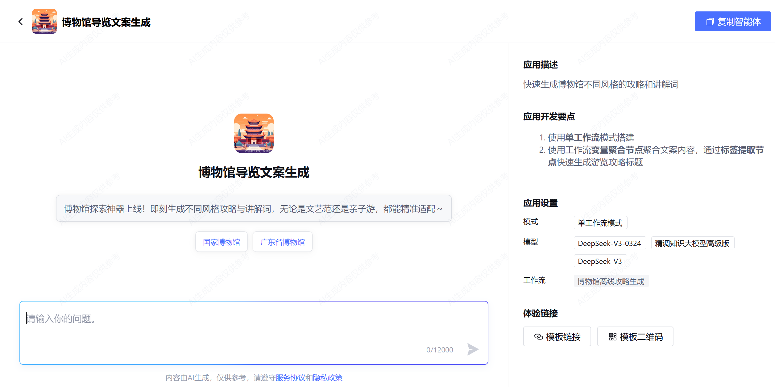 看你喜欢做那个,就选择那个,我选择了博物馆导览文案生成智能体。