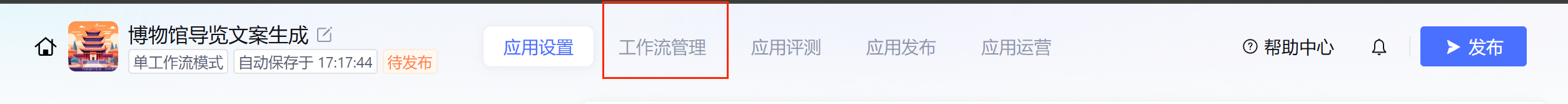 然后点击工作流管理进入到工作流管理里面,这是我们智能体工作的核心流程(自定义):