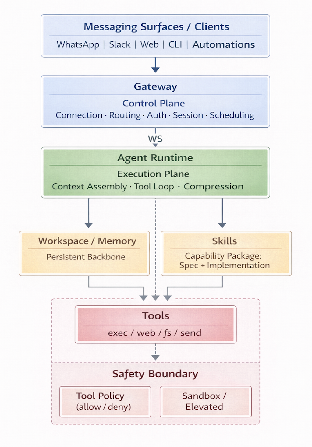 OpenClaw 由哪些工程部件组成?每一层负责什么,又刻意不负责什么?