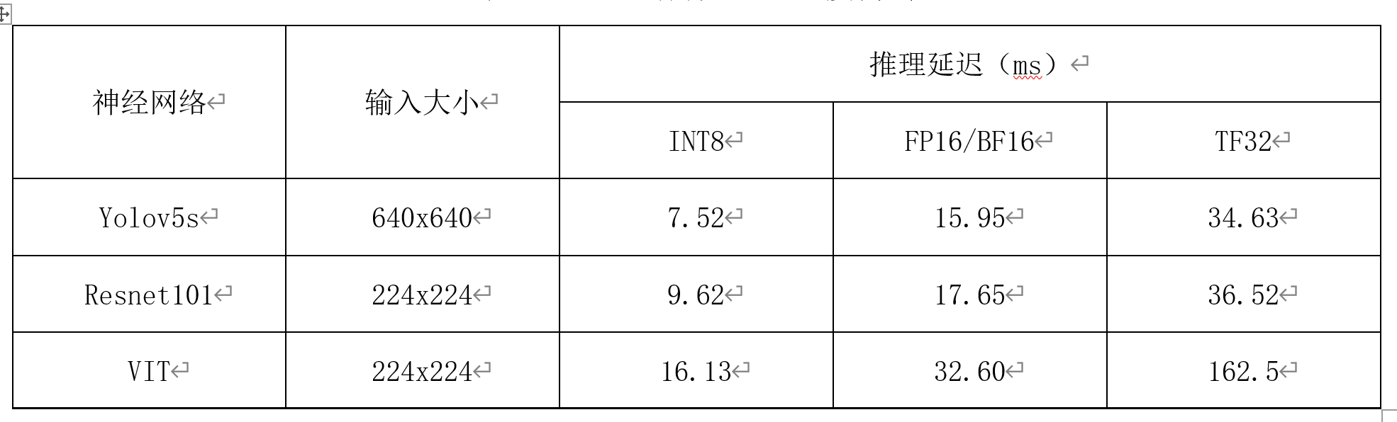 基于30TAI对几个典型神经网络主干部分进行速度测试,其性能表现如下所示。
