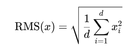 RMSNorm:与layerNorm功能类似,核心思想是不减均值,只用均方根来缩放,导致归一化的公式不一样: