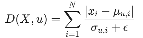 当新样本 X 进来时,我们通常计算其与模板的标准化距离(类似于简化版的马氏距离,忽略了特征间的协方差):
