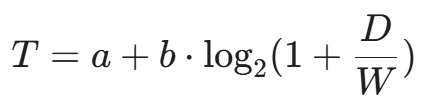 人类移动鼠标去点击一个目标时,所需时间 T 与目标距离 D 和目标大小 W 有关: