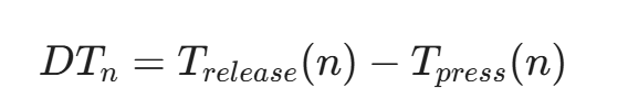 - Press-to-Press (P2P / DD): 第 n 个键按下到第 n+1 个键按下的时间。