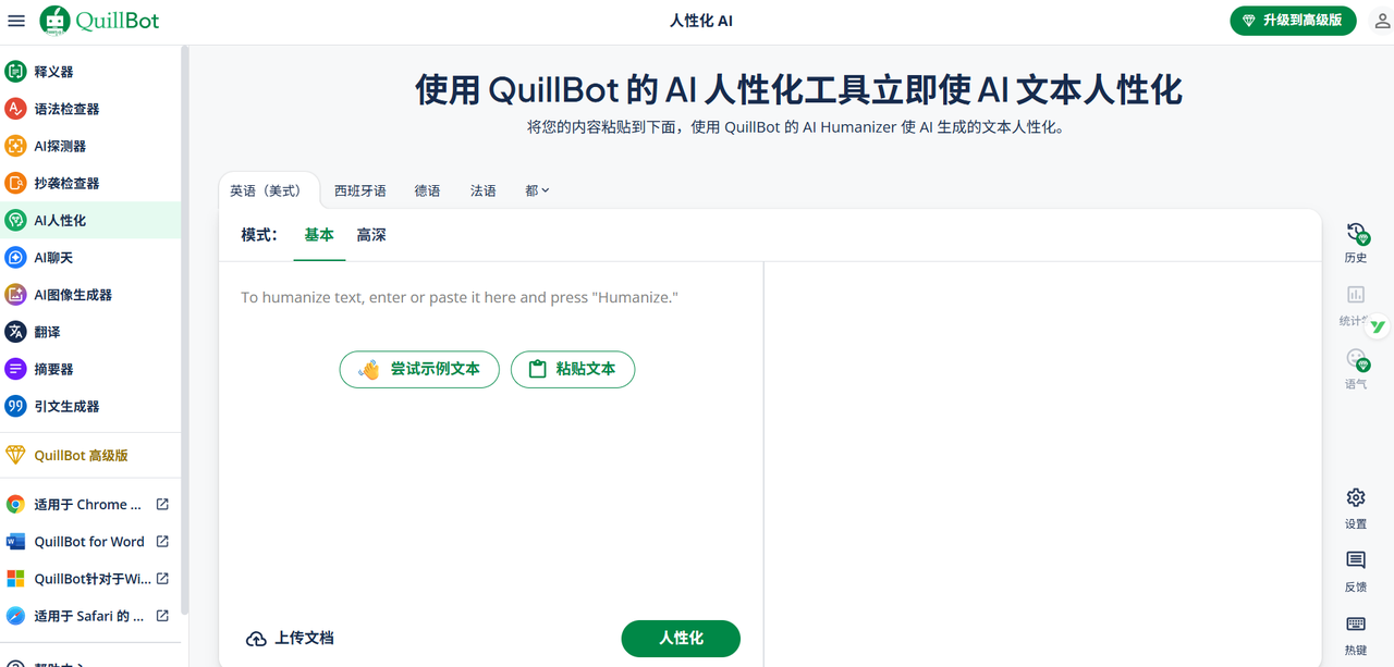 实测感受:如果你写的是英文论文,这就是神。它的Humanize模式能把英语改得非常地道,英文降AI还可以 。
