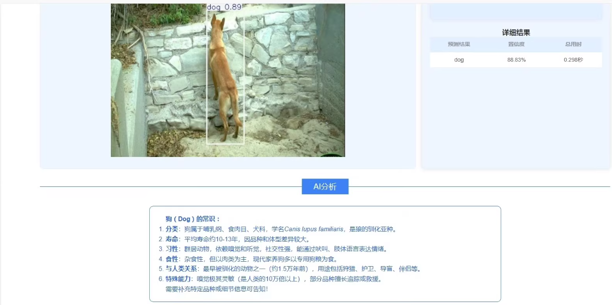 通过以上技术栈的协同工作,本系统构建了一个从视频流接入、智能分析到结果呈现的全链路解决方案,充分融合了现代Web开发的高效性与AI前沿技术的强大能力,为野生动物的智能化监测与保护提供了坚实的技术支撑。
