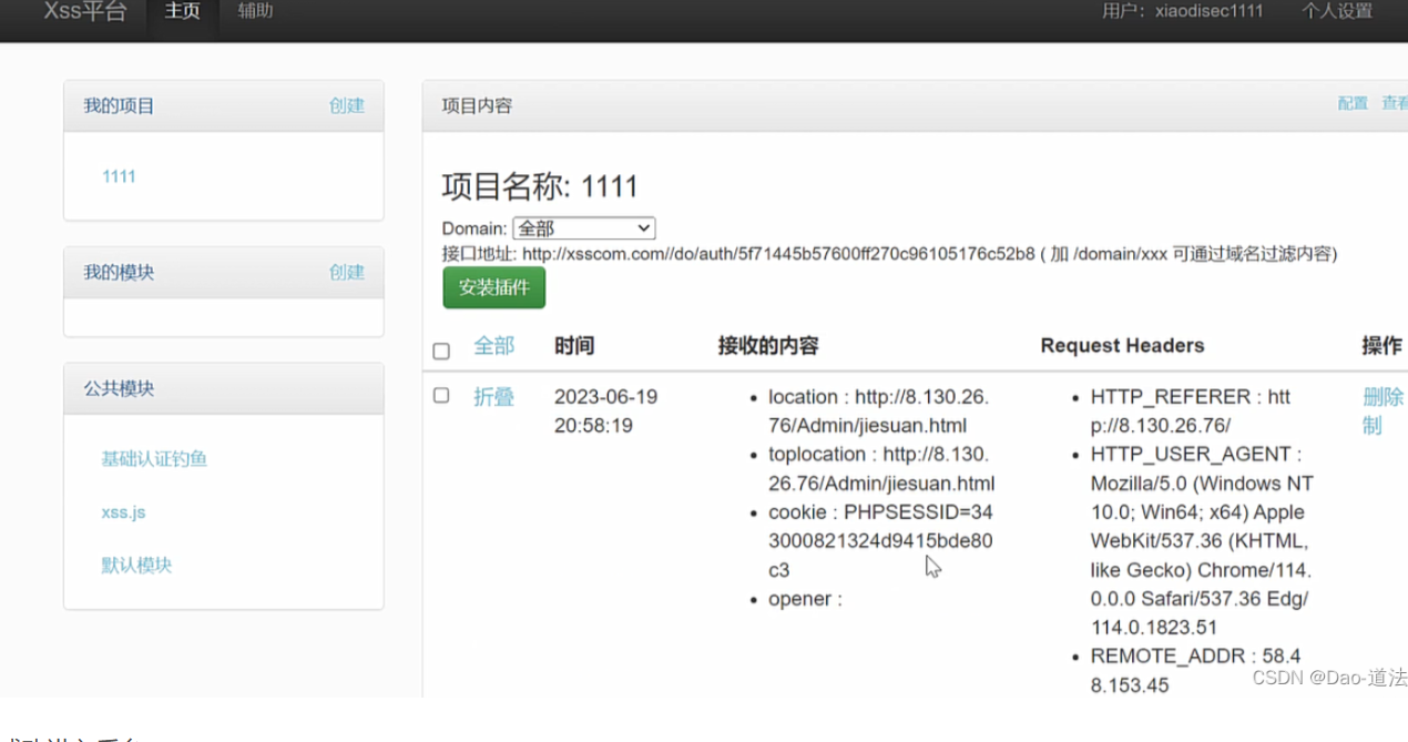 XSS数据平台-XSSReceiver(这是给个人搭建的XSS平台,不想使用网上的XSS平台可以用这个项目)