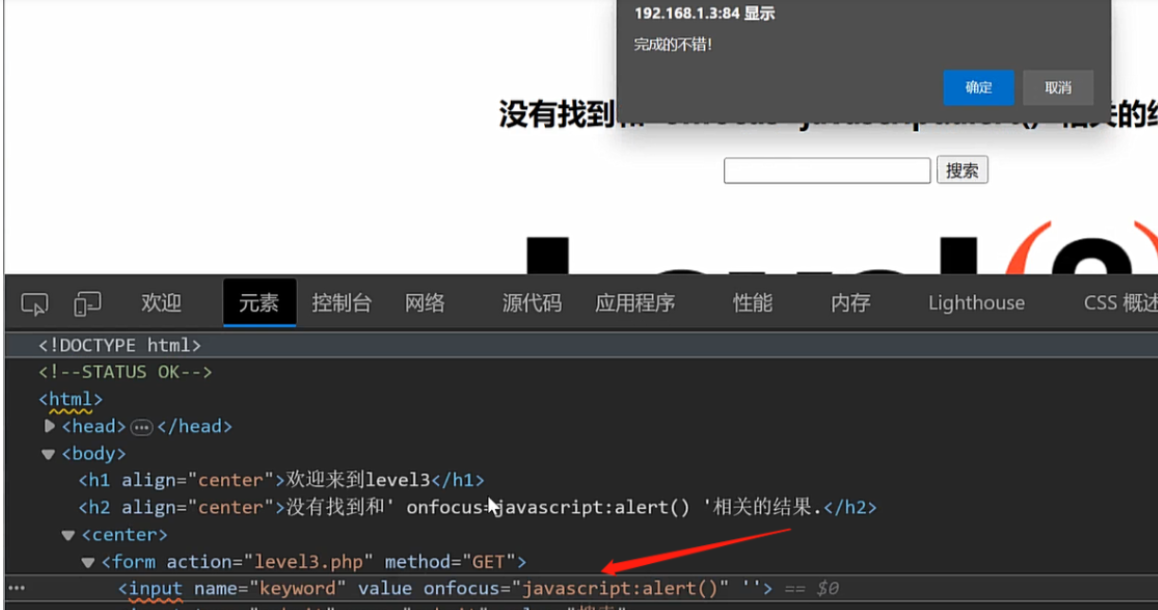15.本关对“,<>实体转义,,但是有ng-include,可以包含别的关卡,本关的过滤只影响自己的输出,无法影响其他关的执行。同时注意不能包涵那些直接弹窗的东西如<script>,比如?src='level1.php?name=<script>alert()</script>',但是可以包涵那些标签的东西比如<a>、<input>、<img>、<p>标签等等,这些标签是能需要我们手动点击弹窗的,构造正确的payload: