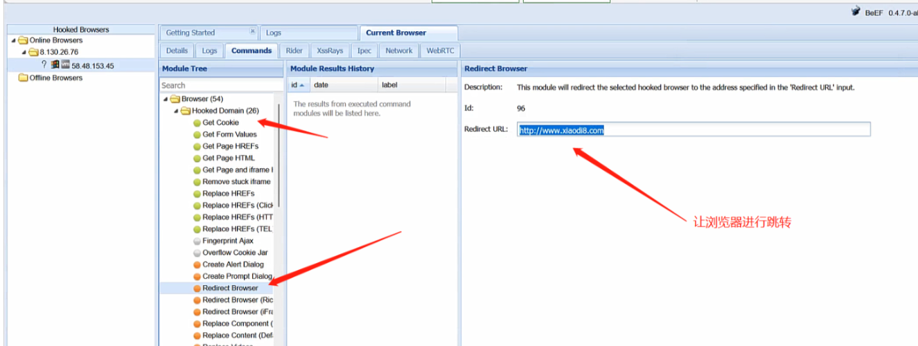 只需执行JS文件,即可实现对当前浏览器的控制,可配合各类手法利用