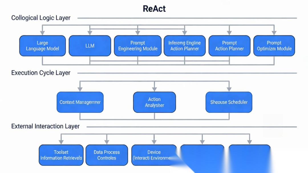 ReAct采用“核心逻辑层-执行循环层-外部交互层”的三层模块化架构,新手按层开发,能快速上手:
