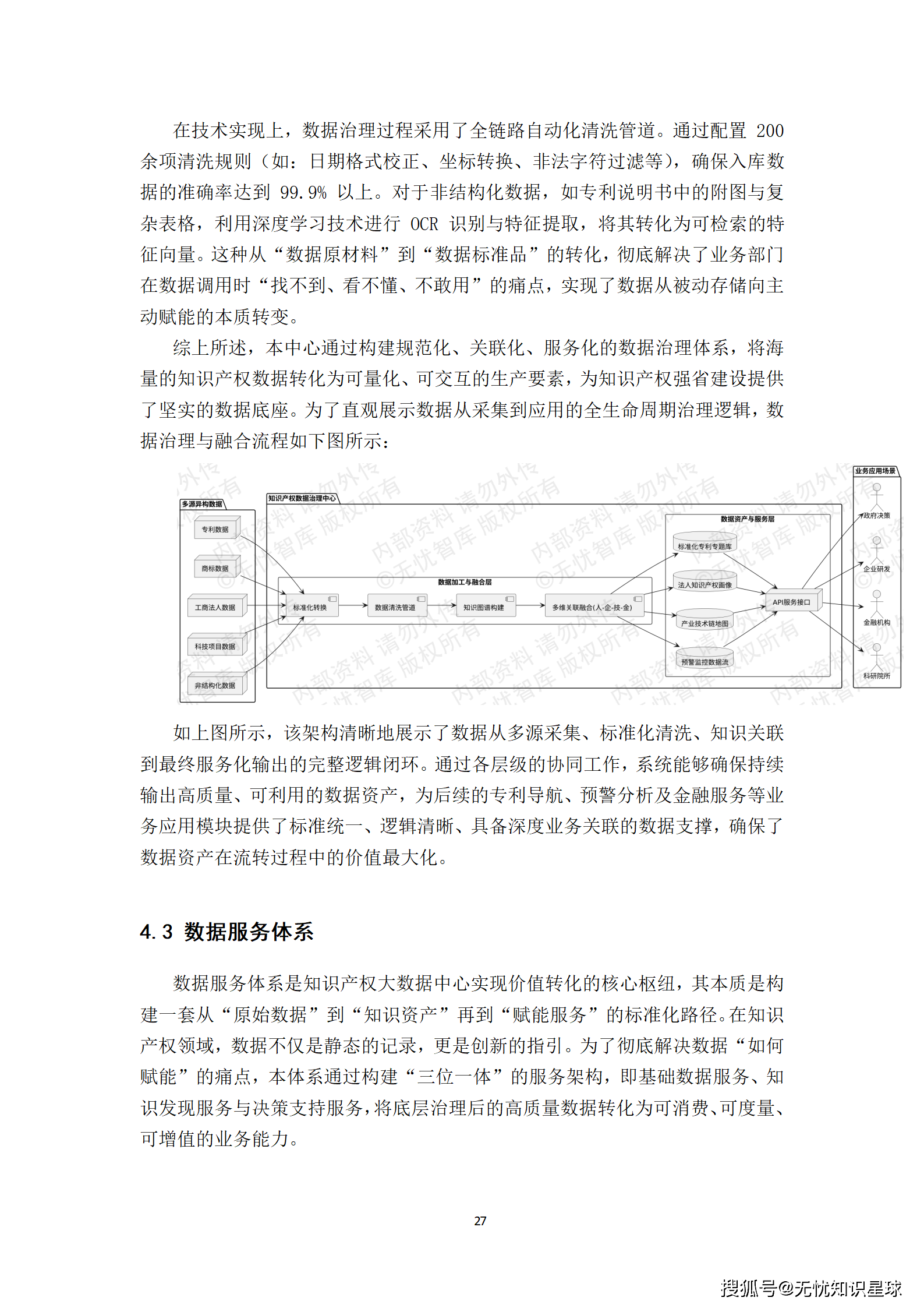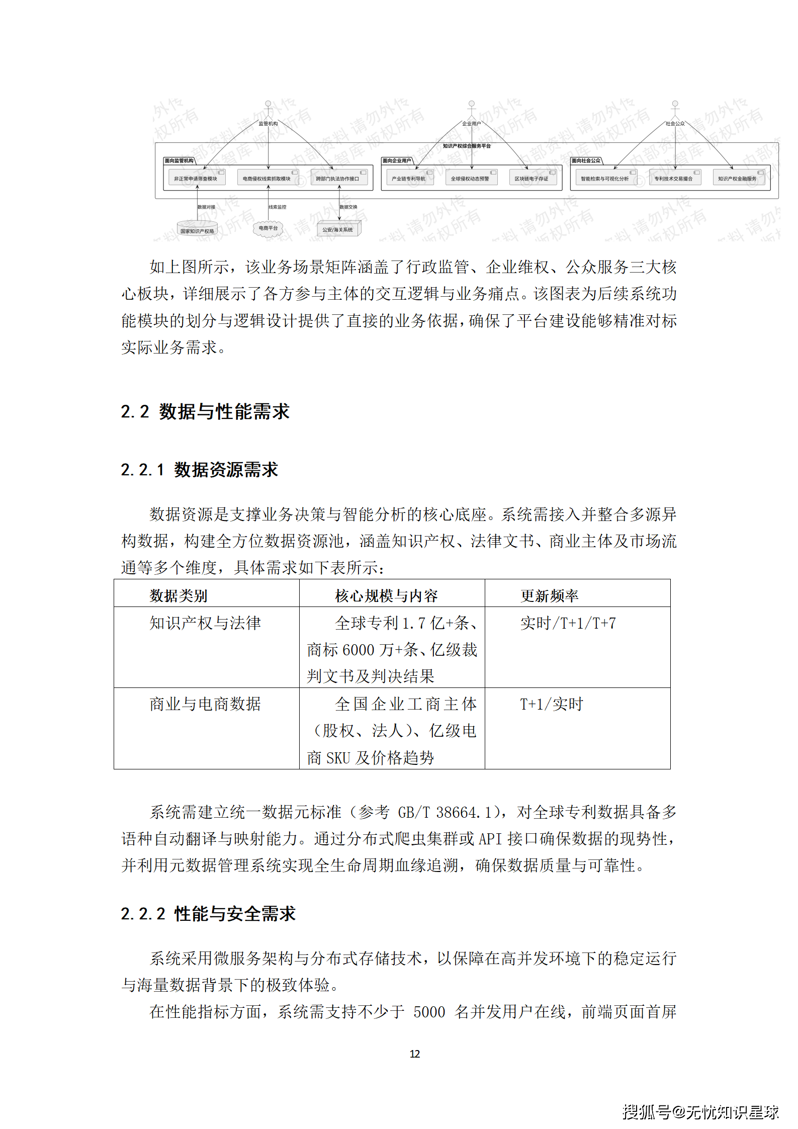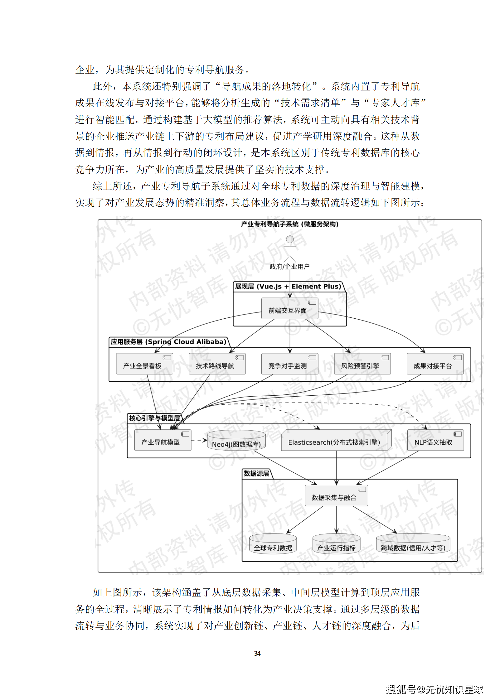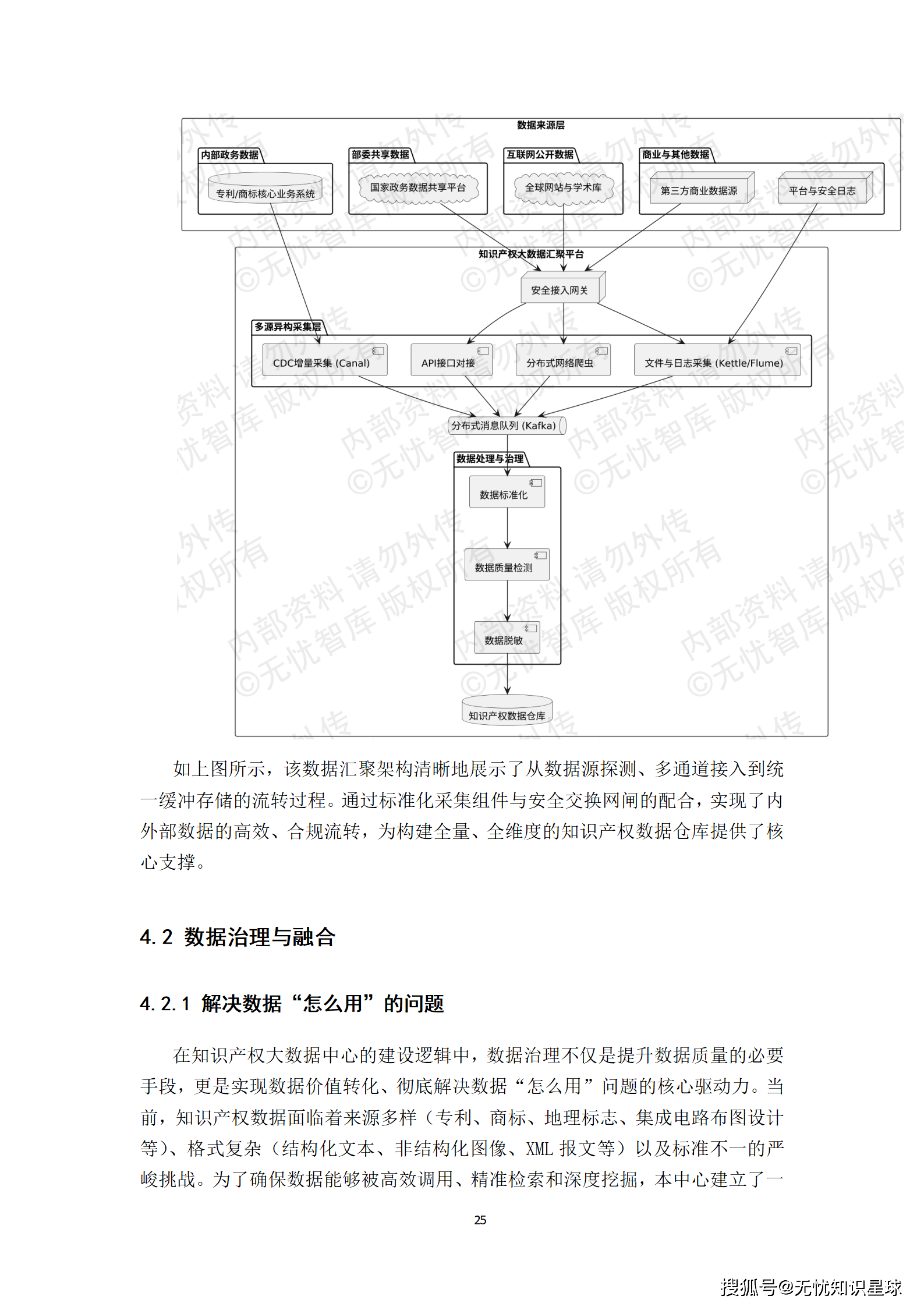 本方案是一份针对政务数字化转型的“智慧知识产权大数据平台”超大型建设方案,适用于省市级知识产权局、市场监管部门及高新园区的重大信息化项目立项与顶层设计。适用于政府信息化主管、智慧政务架构师及项目申报团队。✓ **架构设计前瞻**:采用“一库一脑两翼”总体格局,深度融合AI监管大脑与区块链存证技术,满足等保三级安全合规要求。✓ **数据治理精细**:涵盖全球1.7亿条专利及6000万商标数据,详细规