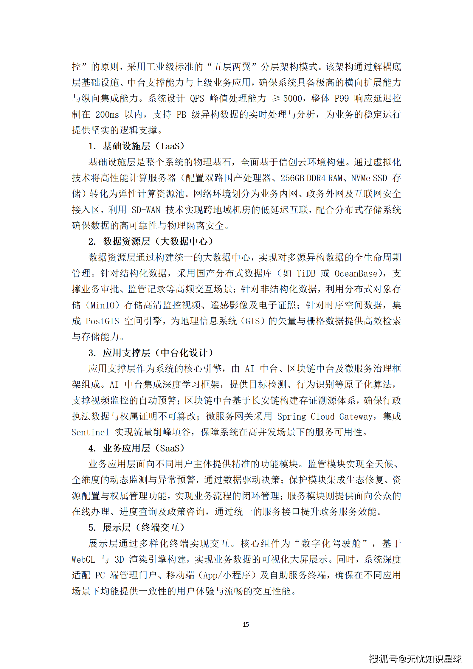 本系统采用工业级标准的**"五层两翼"分层架构模式**,设计QPS峰值处理能力 ≥ 5000,整体P99响应延迟控制在 200ms 以内,支持PB级异构数据的实时处理与分析。