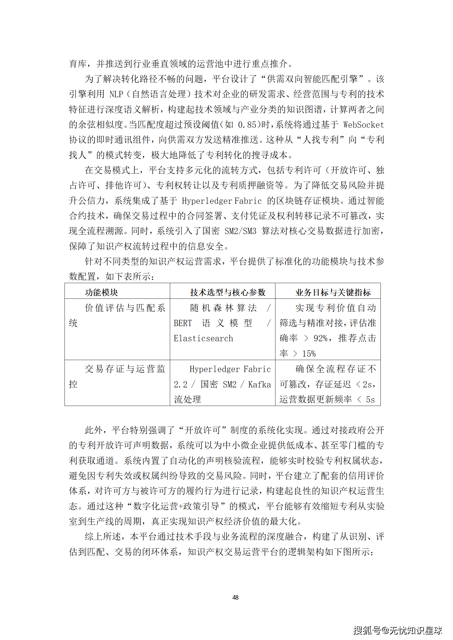 - 专利交易撮合机制:算法匹配高校科研成果与企业技术需求,在线签约与资金托管一站式服务