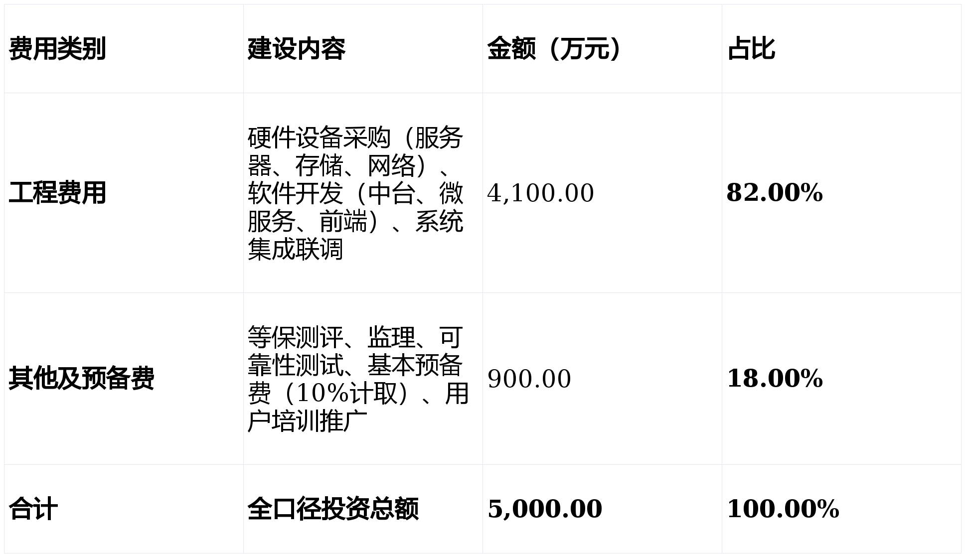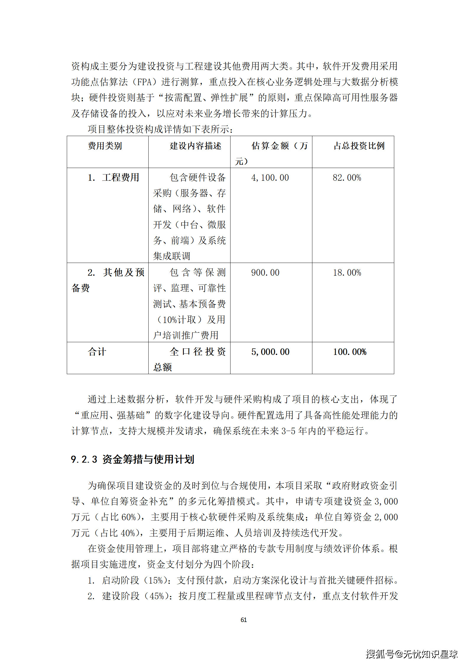 资金筹措: 政府专项建设资金3,000万元(60%)+ 单位自筹资金2,000万元(40%)