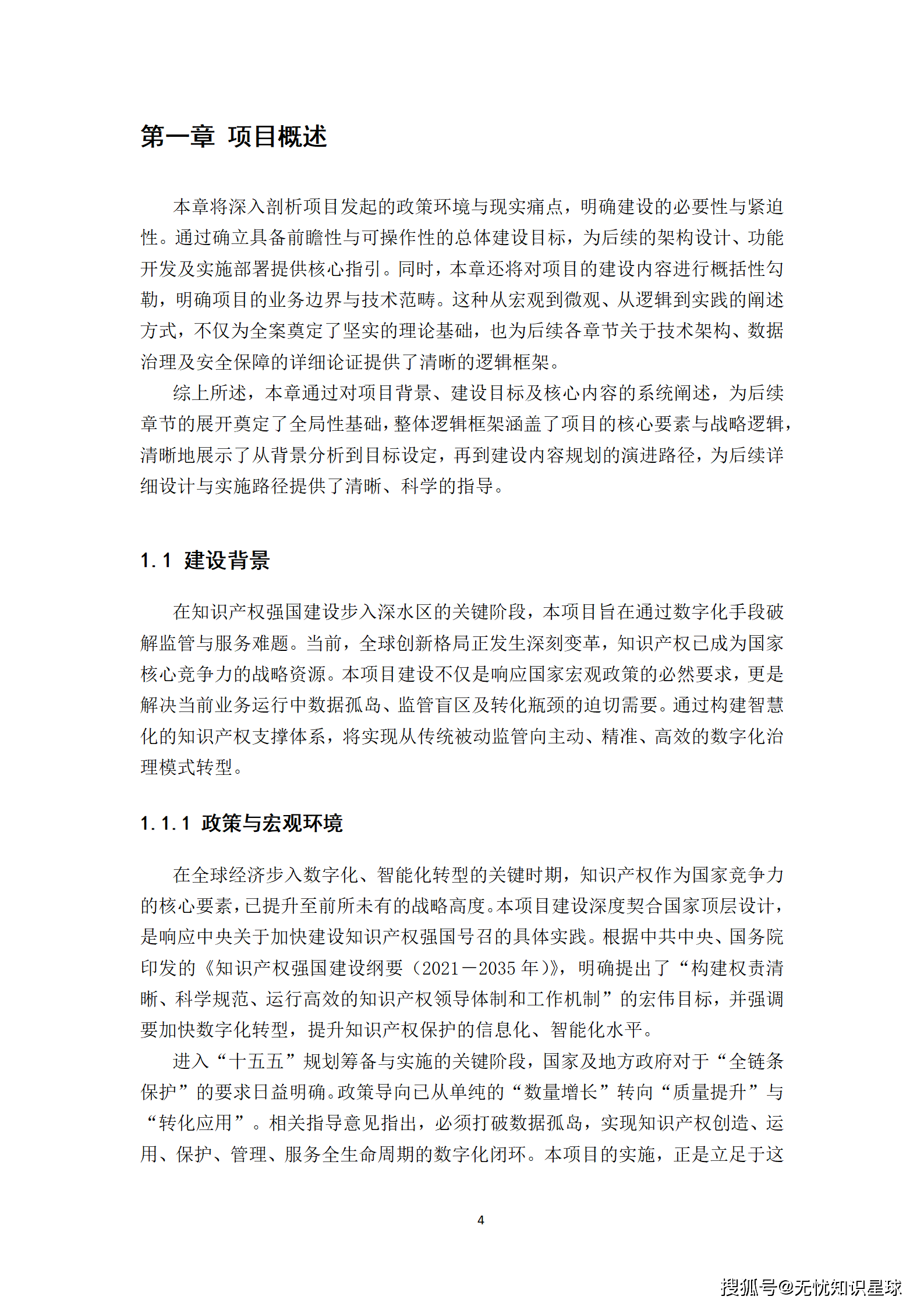 面对"十五五"时期创新驱动发展的战略需求,提升知识产权治理现代化水平势在必行。本项目旨在构建集**“监管+保护+服务” 于一体的大数据平台。建设必要性在于破解传统监管手段滞后、维权成本高等痛点,以数字化转型驱动治理效能升级。主要建设内容包括:集成AI大模型 与Agent智能体 技术,实现精准的专利导航 与全网实时侵权监测**;利用 区块链技术确保 全链条保护中的存证溯源不可篡改。 预期目标是打通知识产权创造、运用、保护全环节,构建高效的数字化治理体系,显著优化营商环境,为城市高质量发展注入强劲创新动能。