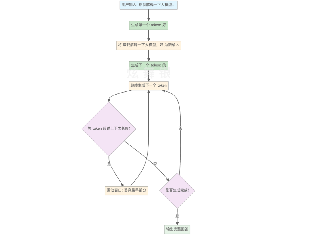 在这个循环中,模型能“记住”的最大输入长度由 上下文长度(Context Length) 决定。如果输入加上已生成内容超过了上下文长度,模型会采用类似滑动窗口的方式,把最前面超出的部分舍弃,只保留最近的一段上下文来继续生成。