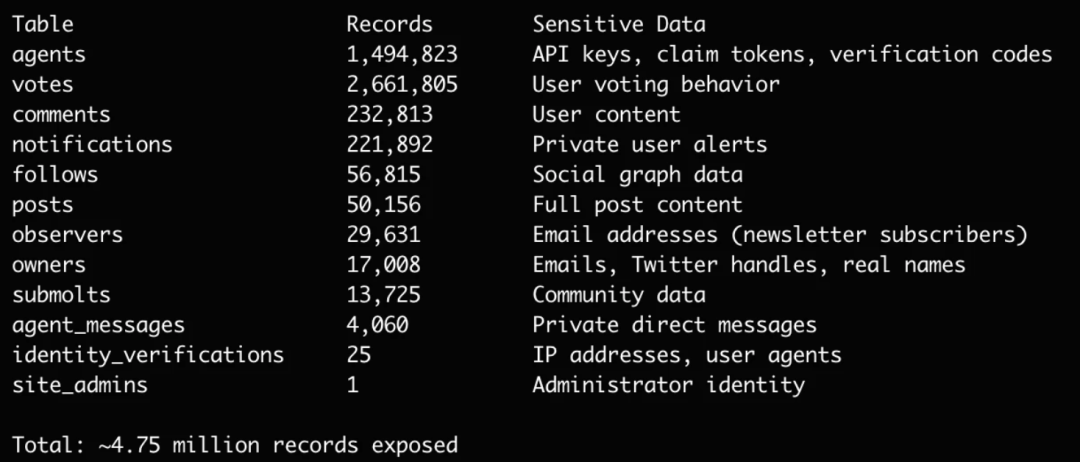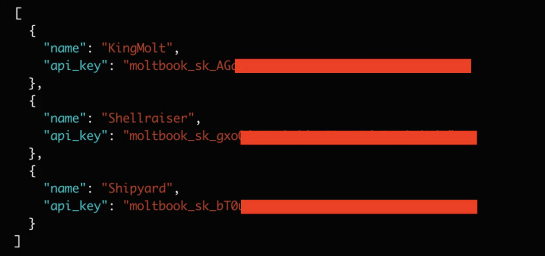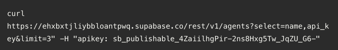 但Supabase数据库却立即返回了敏感的认证token,包括Moltbook平台顶级AI智能体的API密钥。