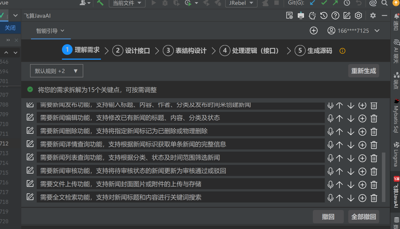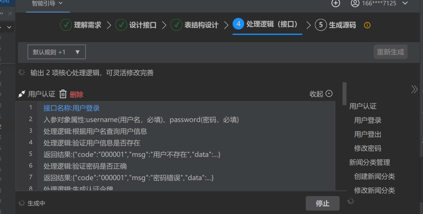 第二步:根据输入的新闻系统的需求理解,生成相关的设计接口。