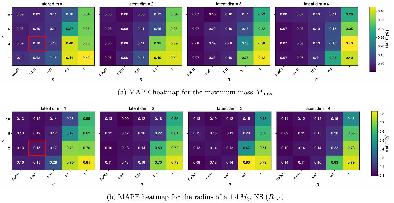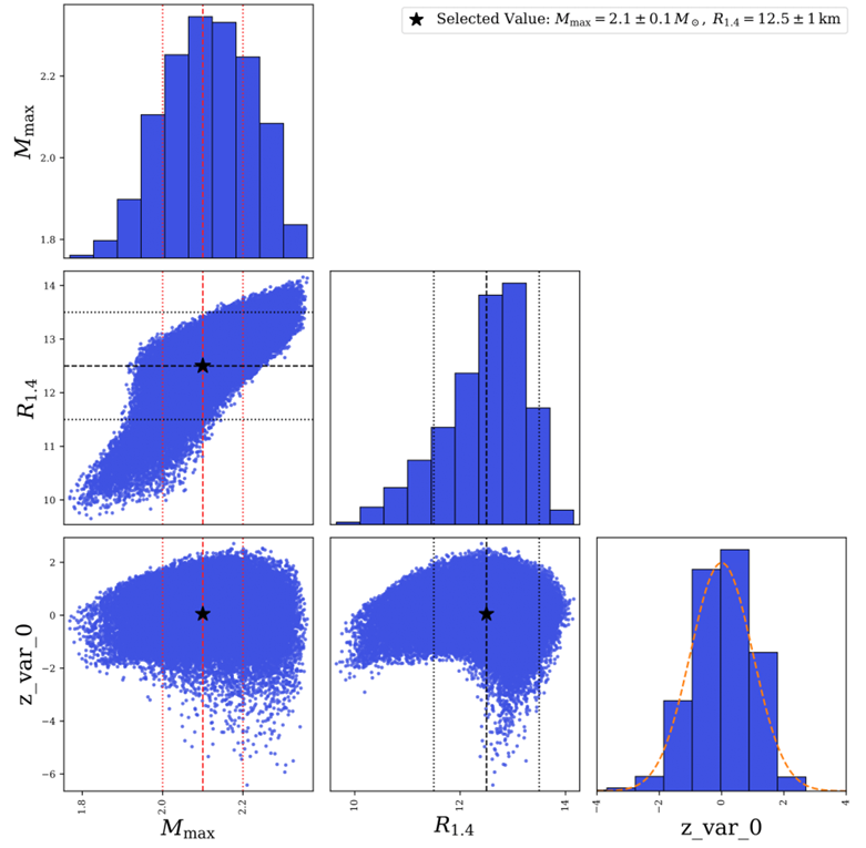 模型创新引入 “监督型潜在变量”:将中子星最大质量(Mmax)和 1.4 倍太阳质量中子星半径(R1.4)作为监督变量,结合 1 个无监督潜在变量(z0),仅用 3 个参数就替代了传统 Skyrme 模型的 10 个参数,实现维度大幅压缩。