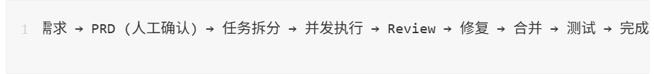 现在能做到:丢个需求 → 确认 PRD → 自动拆分并发执行 → 自动 review 修复 → 合并上线 → 测试闭环。
