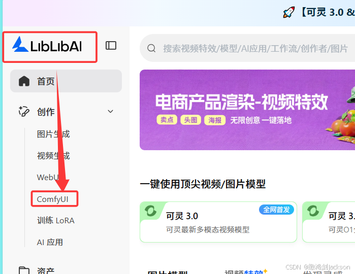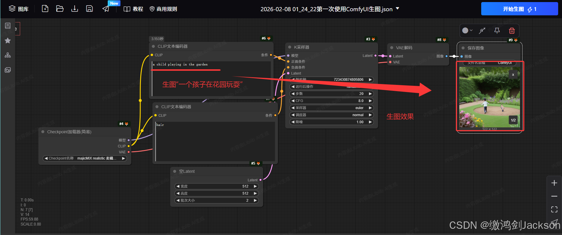 登录liblibAI平台,打开ComfyUI,进行一个简单的文生图