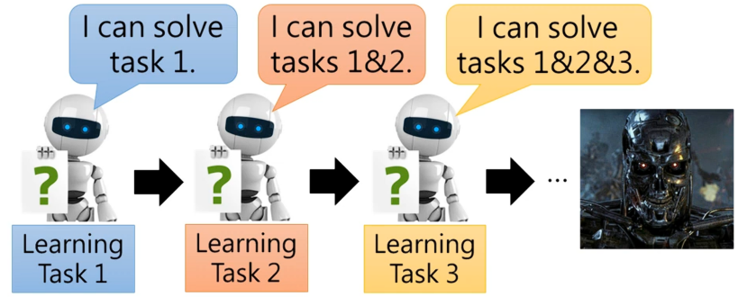 虽然大家关注的主题多是偏行人类如何活到老学到老,但是机器其实也是需要做终身学习。机器对于终身学习这件事也是非常接近与人类对于AI的想象。
