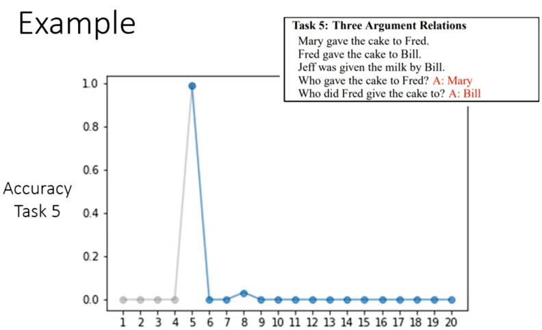 为了证明不是特例,现在再看看自然语言处理的例子:让机器读一篇文章,然后问其一个问题机器给出答案。这里用的任务是简单的QA任务——bAbi。