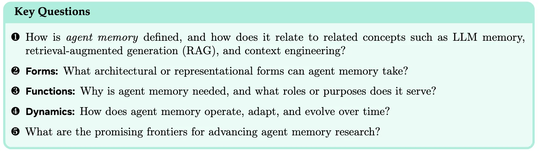 - 功能(Functions):记忆在智能体中扮演什么角色?(第4节)