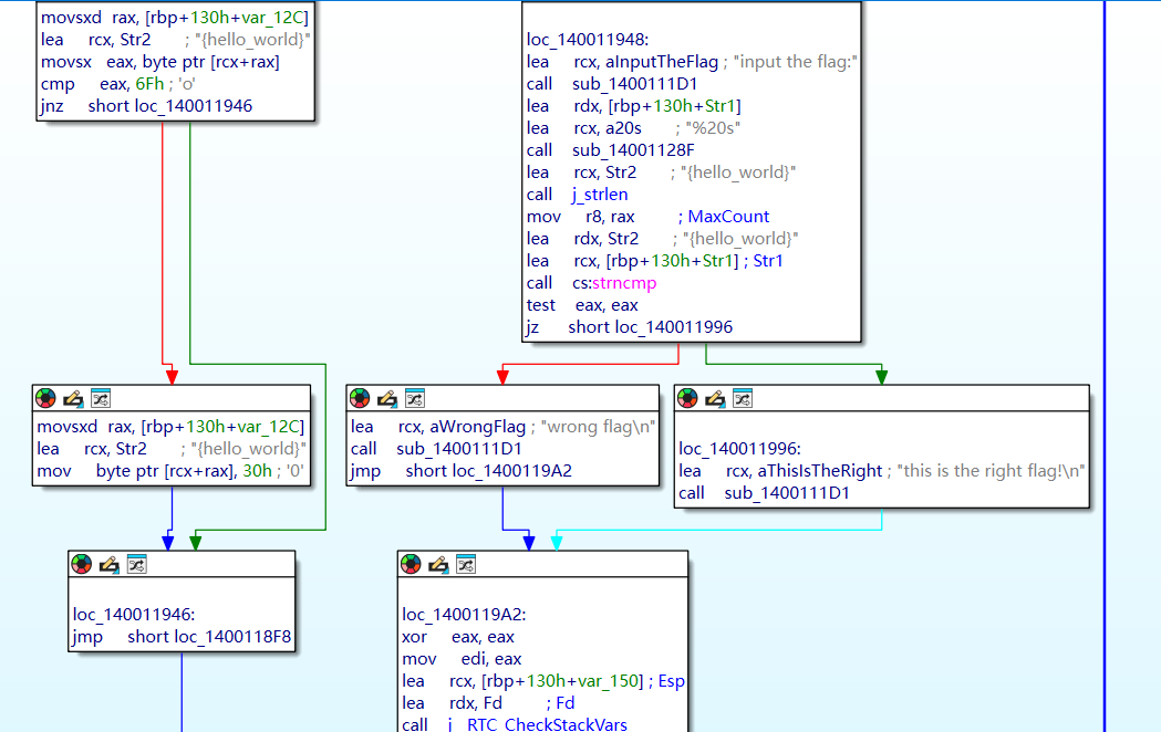 sub_1400111D1("this is the right flag!\n"); // 匹配则输出正确